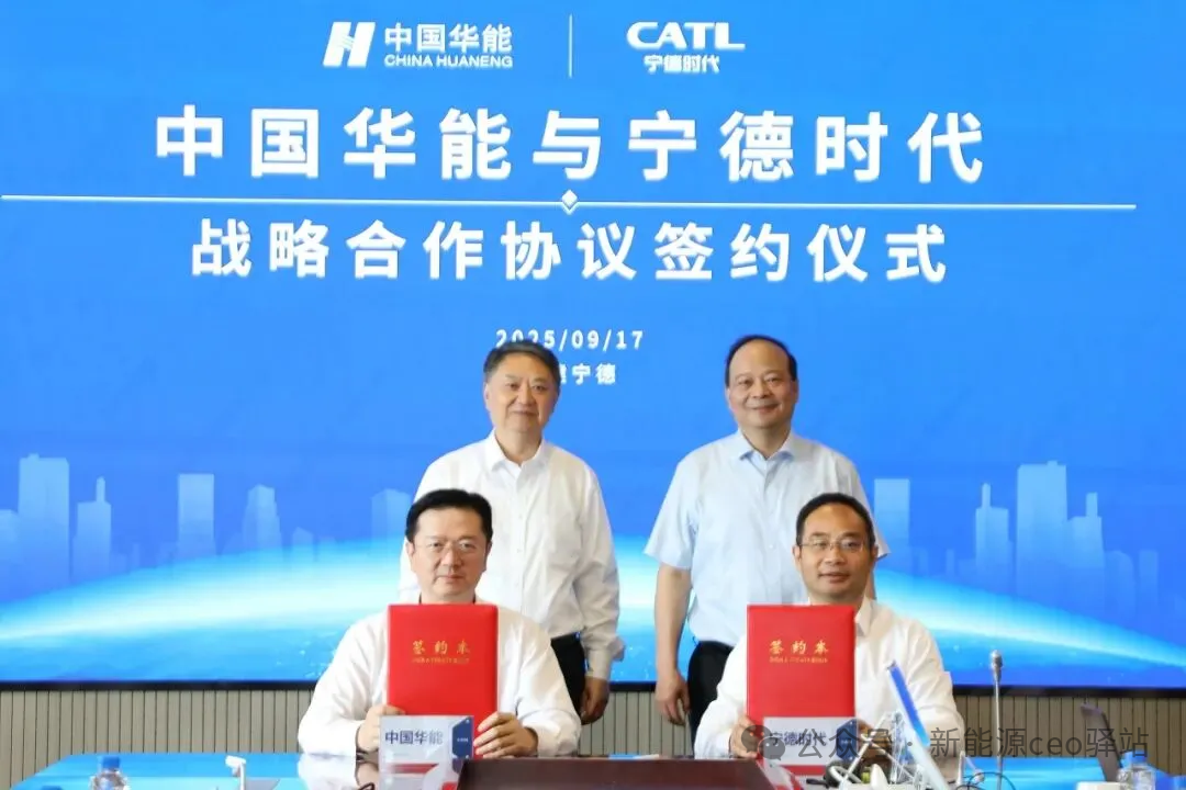 9月17日,中国华能集团有限公司与宁德时代新能源科技股份有限公司在福建宁德签署战略合作协议,集团公司董事长、党组书记温枢刚与宁德时代董事长曾毓群共同见证签约并举行会谈。集团公司副总经理、党组成员司为国,宁德时代市场体系联席总裁兼零碳能源事业部总经理郑叶来分别代表双方在协议书上签字。温枢刚感谢宁德时代多年以来对中国华能的关心和支持,并简要介绍了公司绿色转型、科技创新等有关情况。